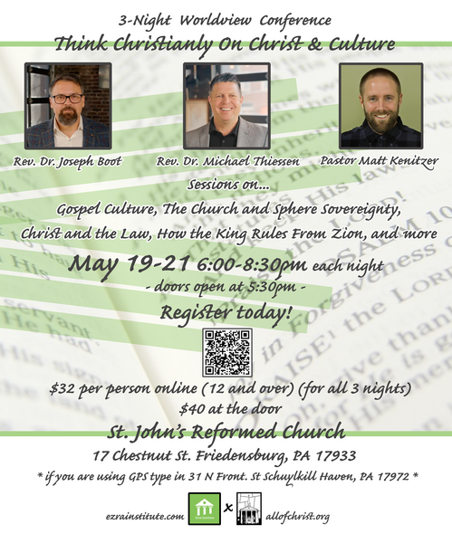 Other distinctives from the pulpit are Reformed Baptist Covenant Theology, Theonomy, Postmillenialism, and the Abolition of Abortion. Even though there may be strong convictions held by those who preach here, we recognize that not everyone in the pew will hold the same view on these matters.
